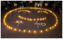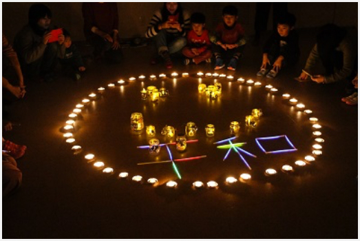 最後にみんなで作ったキャンドルを並べて暗くし、灯りを見ながら平和への願いを込めました。