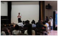 開会式では、梶原実行委員長より挨拶があり、世界を取り巻く状況や平和活動の大切さをお話いただけました。そのあとに、統一グッズである缶バッジのデザインに選ばれた大塩さんより挨拶がありました。