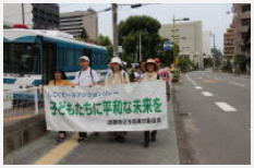 徳島県ではしこくピースアクションリレーと共に、平和の取り組みをおこなっている「国民平和大行進」があり、参加の呼びかけのための紹介DVDが上映されました。その中では2歳の時に広島で被爆した佐々木禎子さんの生涯が紹介され原爆の悲惨さを訴えました。