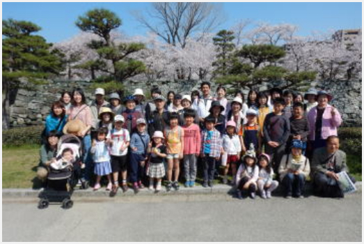 昨年は満開の中の開催でしたが、今年は当日開花宣言が出たばかり。ちらほらと咲く桜の下、徳島中央公園で開催しました。天候もよく花見客が賑わう中、大人30人子供19人で公園内の城山周辺を約60分をかけてウォーキングしました。