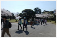 毎年なかなか桜の見頃に開催できなかった「桜編」。今年は満開の桜のもと徳島中央公園で開催しました。天候もよく多くの花見客が賑わう中、大人29人子供15人で公園内の城山周辺を約50分をかけてウォーキングしました。