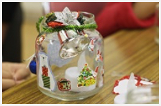 22名(大人9名子ども13名)親子が参加。LEDキャンドルをクリスマスバージョンにデコレーションし世界に一つだけの作品が出来ました。
