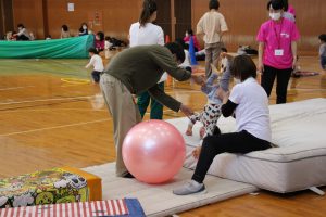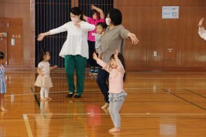 『おうちでげんきっず体操』で人気の喜多知子先生といっしょに「手遊び」や「リズム体操」「親子でよ~いどん」「いろいろ運動サーキット」などのプログラムをみんなで楽しみ、笑顔が溢れる取り組みとなりました。
