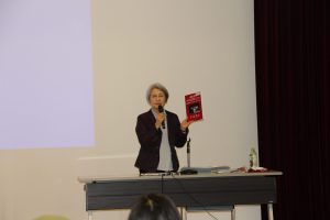 福島第一原発事故後のフクシマをモノの視点で描いた、写真絵本「私はあいちゃんのランドセル」。作者の菊池和子さんをによる朗読ライブが開催され38名が参加しました。