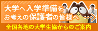 この春、大学進学をするお子様がおられるご家族様へ、大学生協より新入生応援サイトのご案内をさせていただきます。大学生協は、在学中における大学生活のサポートが可能です。下記バナーより専用サイトを閲覧ください。
