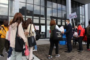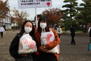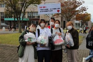 とくしま生協・四国大学が連携し、新型コロナウイルス感染拡大の影響で、仕送りやアルバイトなどでの収入が減り困っている200名の大学生に「学生さん応援セット」を無償でお渡ししました。県内でがんばる大学生を応援したい!という想いで、一人ひとりに「がんばってね!」と声かけを行いました。