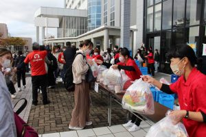 受け取った大学生からは、「毎日使う食料品がたくさん入っていて助かります。」「応援いただきこれからの学生生活もがんばりたいと思います。」などの声があり、笑顔が溢れていました。